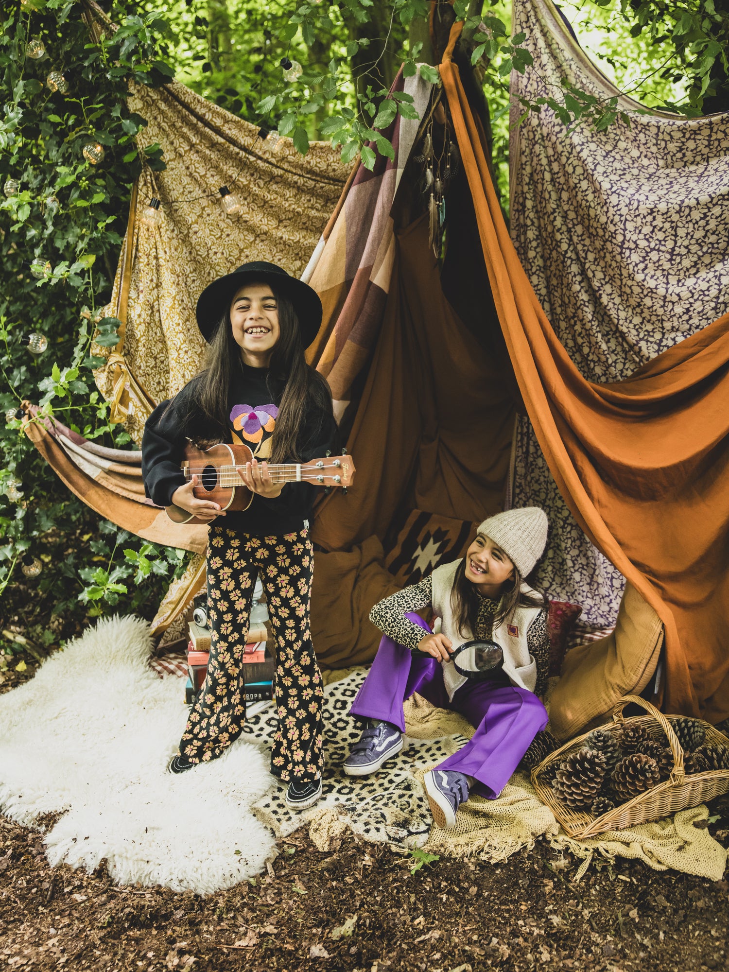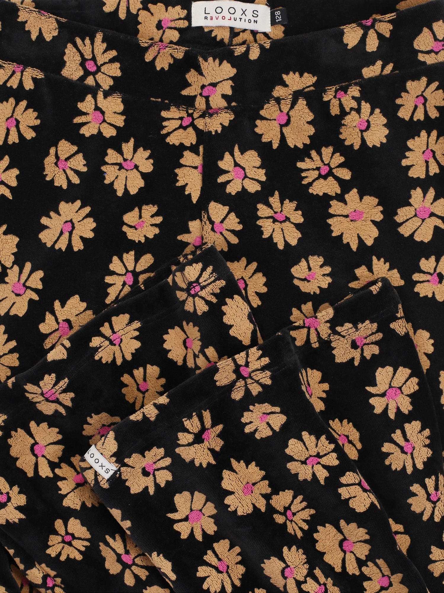 Flared broekje in een zachte katoenen krinkel stof. Vrolijke full color Confetti motief print, een perfecte match in deze drop van Looxs Little. Elastische tailleband. Slim fit tot knie met flared fit. Lange lengte.
