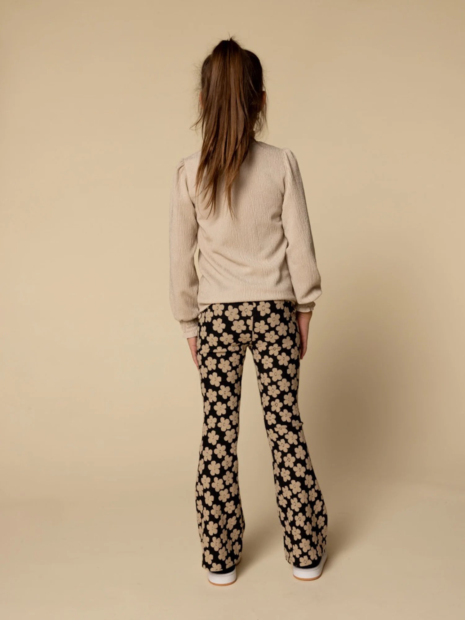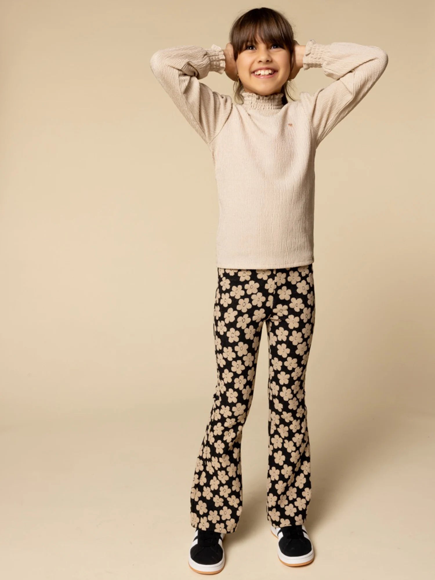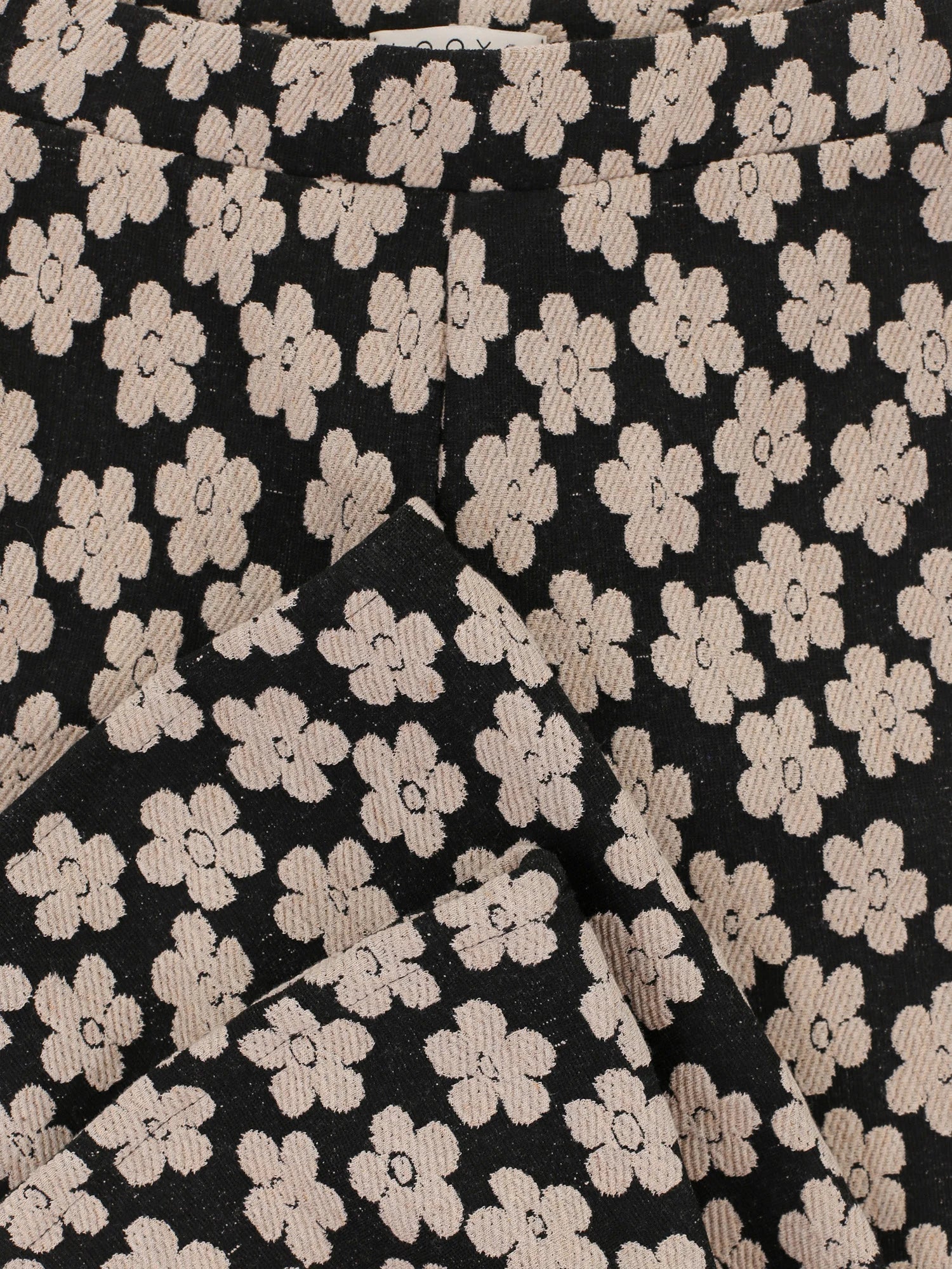 Deze Bestseller is Casual, Cool & Comfy. Uni zwarte ondergrond kleur met beige intarsia bloem dessin. Een perfecte match in deze eerste levering van LOOXS little drop 3. Lange lengte met een flared fit. Elastische tailleband.