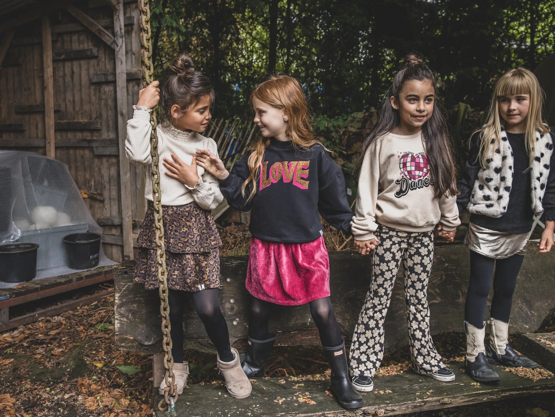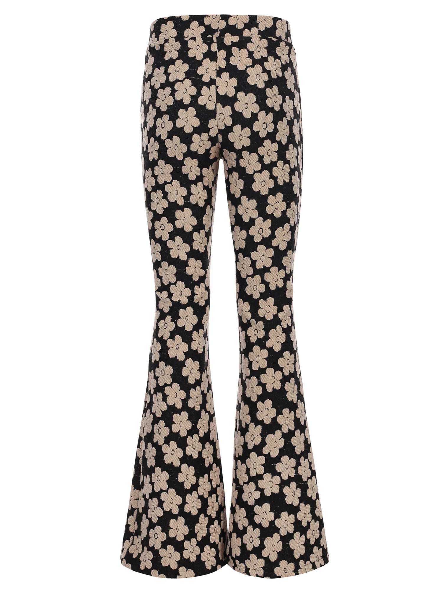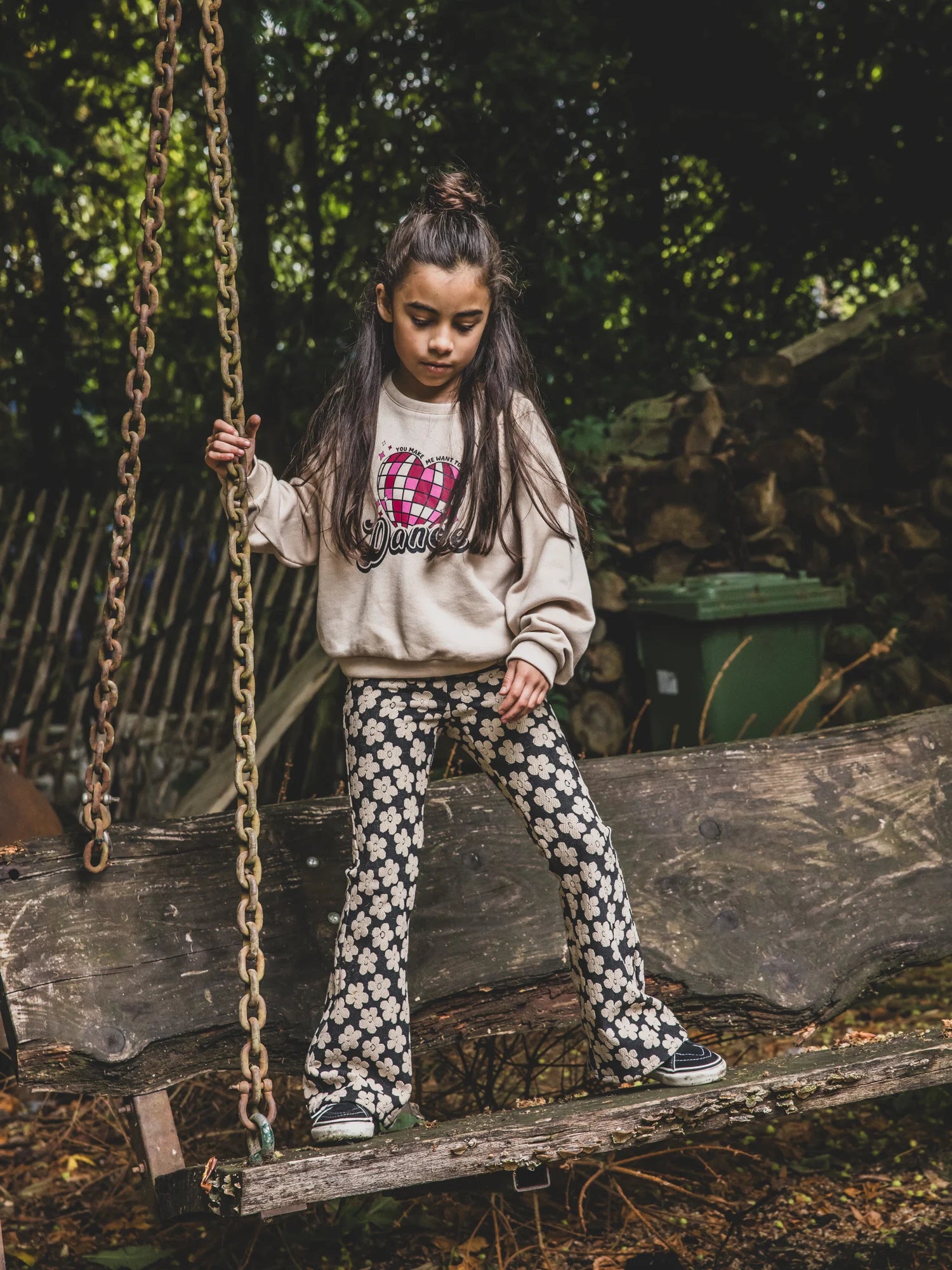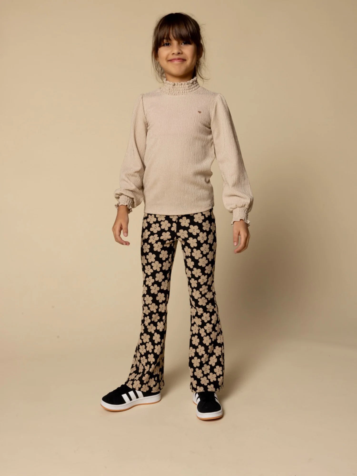Deze Bestseller is Casual, Cool & Comfy. Uni zwarte ondergrond kleur met beige intarsia bloem dessin. Een perfecte match in deze eerste levering van LOOXS little drop 3. Lange lengte met een flared fit. Elastische tailleband.