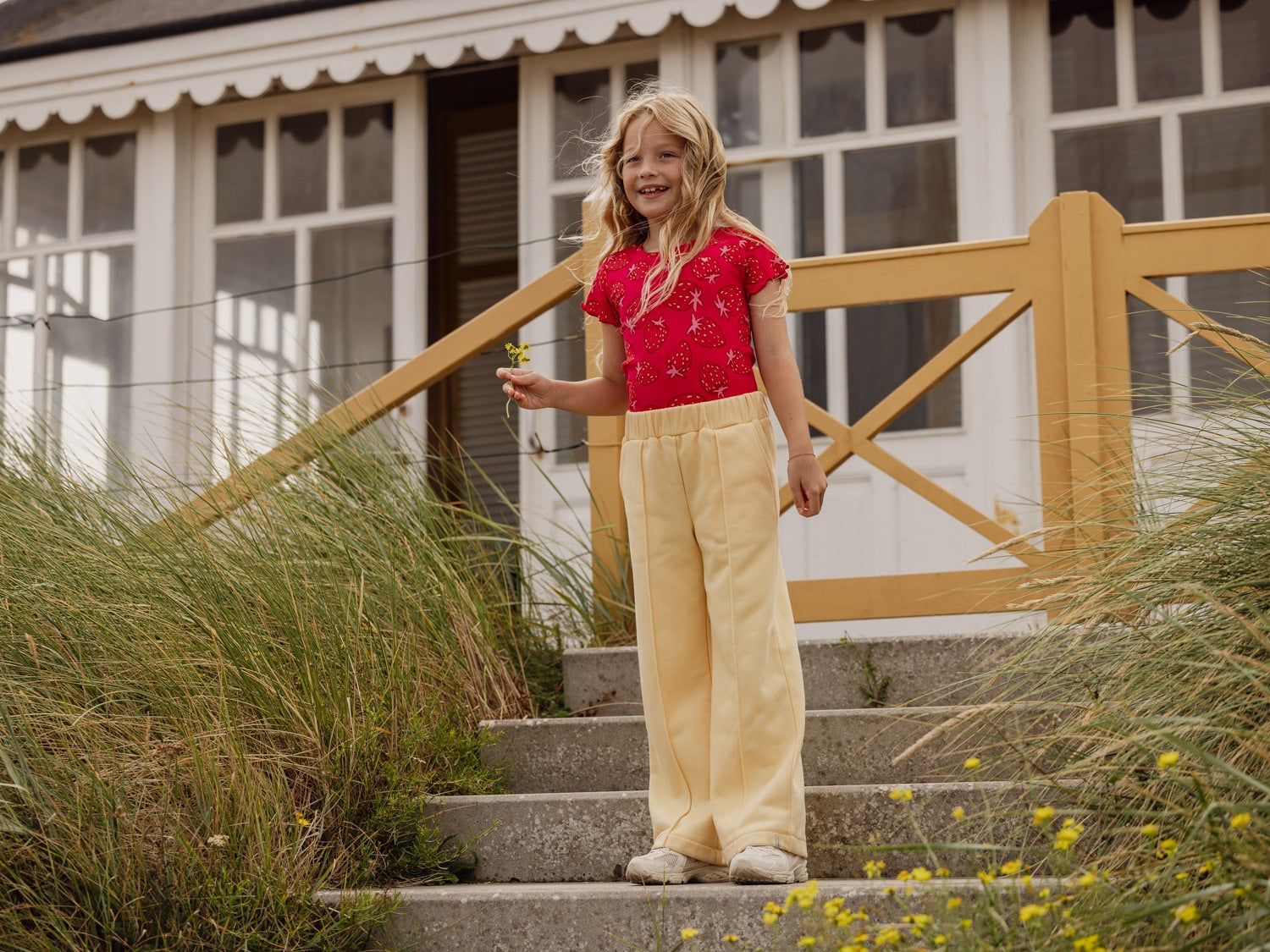 Sweatpants met een coole pantalon look in Abricot geel. Comfy katoenen sweat jersey kwaliteit. Lange lengte en een rechte pijp. Elastische tailleband. Comfy katoenen jersey sweat / elasthan kwaliteit.